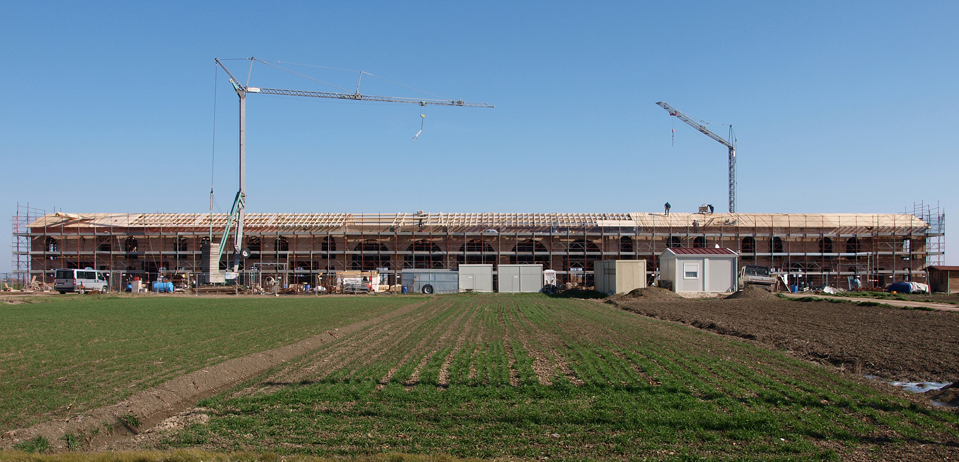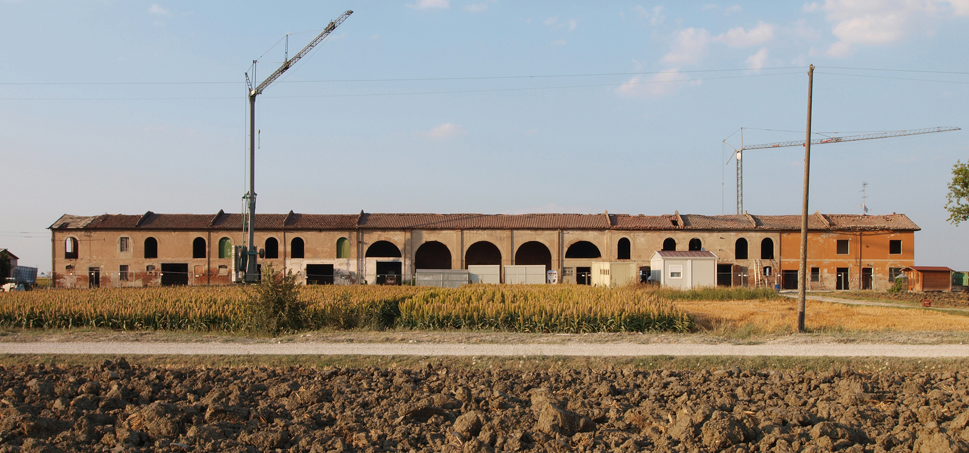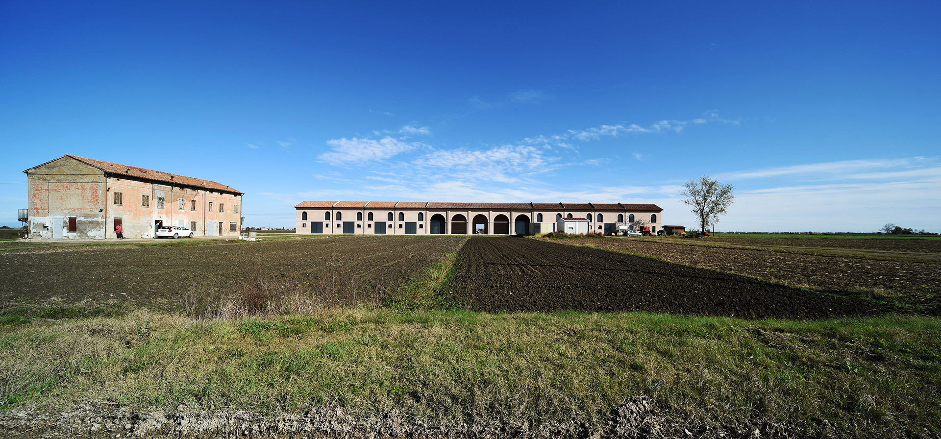 L’edificio oggetto d’intervento costituisce la sezione abitativa e produttiva della corte storica denominataIl Castello”, ubicata lungo il confine storico-giurisdizionale tra le municipalità di Bondeno e Finale Emilia, là dove l’Alto Ferrarese sfuma nelle Valli Modenesi, “terra di frontiera” dai precari equilibri idraulici. Era il 1920 quando il Cavalier Armando Scagliarini, valente agronomo locale, tracciava con geometrica precisione una scacchiera di appezzamenti (“tornature”) per coltivarvi l’allora emergente coltura del tabacco.
