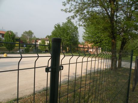 Su richiesta può anche essere fornito con palo in tubolare quadro oppure con il classico paletto a T. Mentre nella tradizionale posa della rete in rotoli, i pali di sostegno vengono solitamente posati ad interasse di circa 2 metri uno dall’altro, con l’utilizzo di questo pannello si posano circa il 50 per cento di pali in meno con tutti i vantaggi che ne conseguono: meno materiale, meno fori nel terreno o sul muretto, meno calcestruzzo e tempi di posa più brevi. Inoltre non occorrono saette di tensione, tendifilo, fili di tensione e tutto ciò che viene di norma usato durante la posa di una classica recinzione con rete in rotoli; infatti, l’unico accessorio indispensabile è il collare metallico necessario per il fissaggio del pannello ai pali.