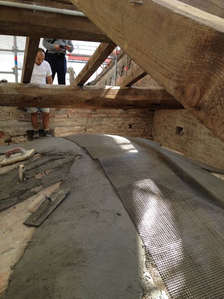Il sistema di rinforzo prevede la posa di due strati di malta Ruredil X Mesh M25 dello spessore di 3 millimetri ciascuno con interposta la rete in carbonio Ruredil Mesh C10. Ruredil X Mesh C10 è un sistema di rinforzo strutturale che garantisce efficacia di posa in opera anche su supporti umidi e in ampi range di condizioni ambientali, facilità di manipolazione e applicazione, rapidità di pulizia degli attrezzi, atossicità per gli operatori e per l’ambiente.