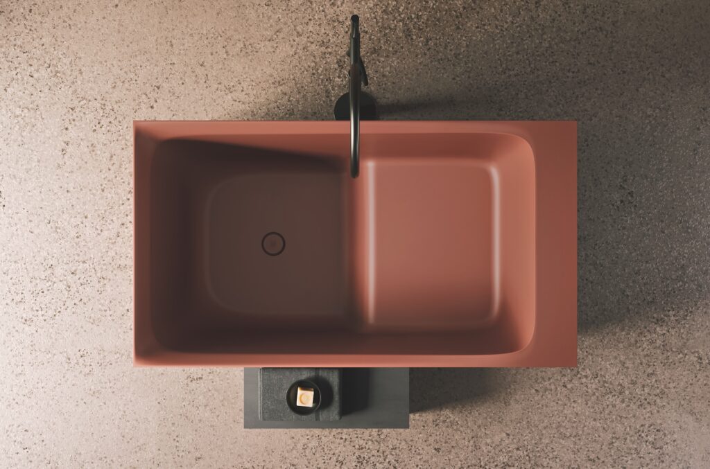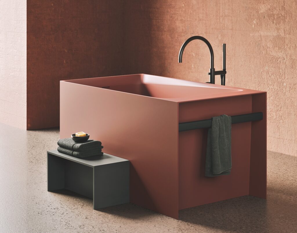 Tra i 7 colori in cui è disponibile la vasca, un caldo ed avvolgente rosso argilla