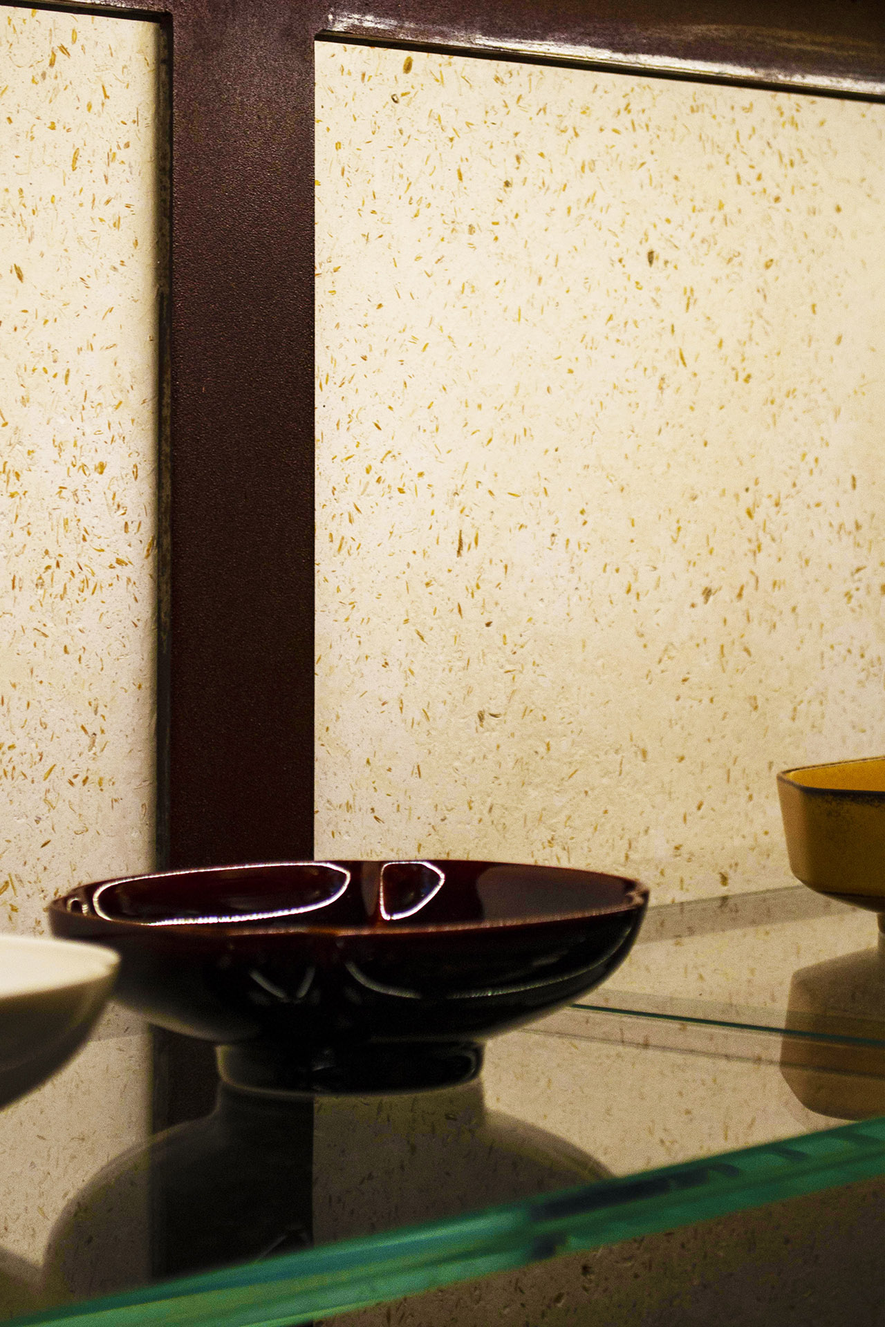 La finitura delle pedane di arredamento e dei banconi è stata realizzata con Rh120, appositamente studiato per una levigatura dal grande impatto estetico. Inoltre, per dipingere le pareti è stato utilizzato un altro prodotto firmato Ricehouse: l’ecopittura naturale e traspirante Rh500, a base di calce di fossa a lunga stagionatura e pula di riso.
