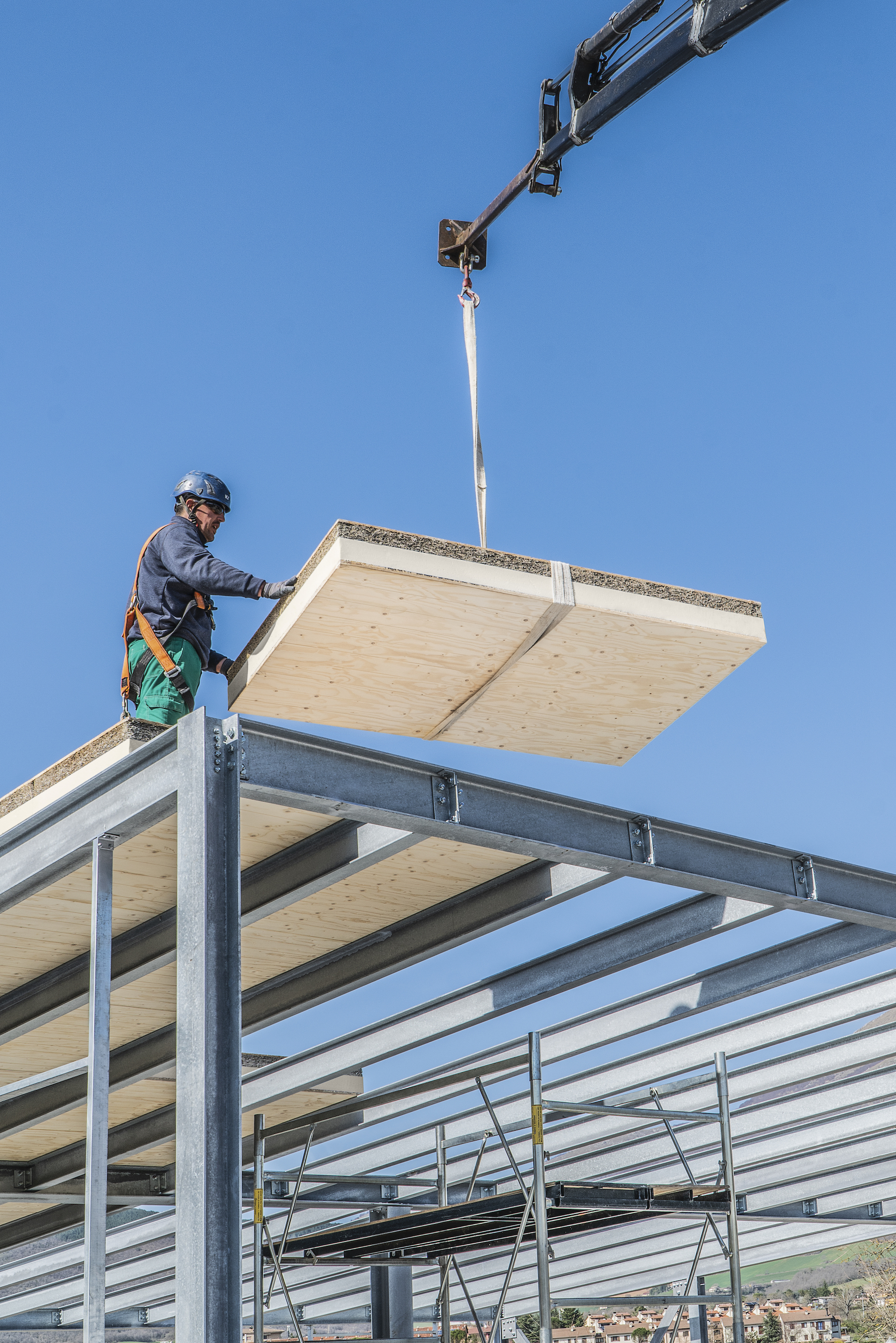 Oltre agli aspetti antisismici i progettisti hanno attentamente valutato quelli dell’efficienza energetica della struttura e del comfort abitativo. La soluzione adottata per la copertura piana dell’edificio ha previsto l’applicazione, mediante fissaggio meccanico, di un pannello sandwich composito, Poliiso WR LC prodotto dalla società Ediltec srl e fornito dalla rivendita Felc srl di Trevi.