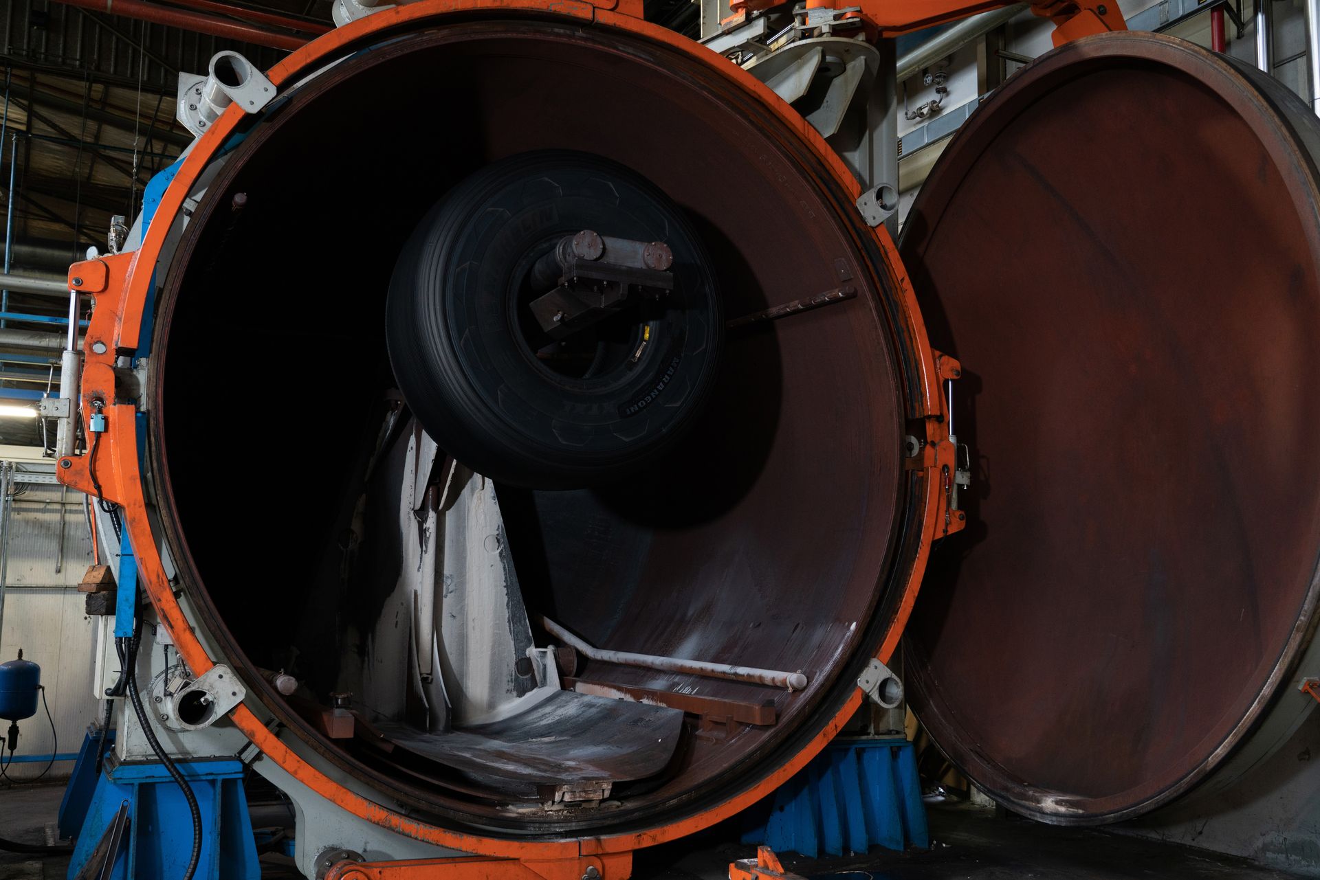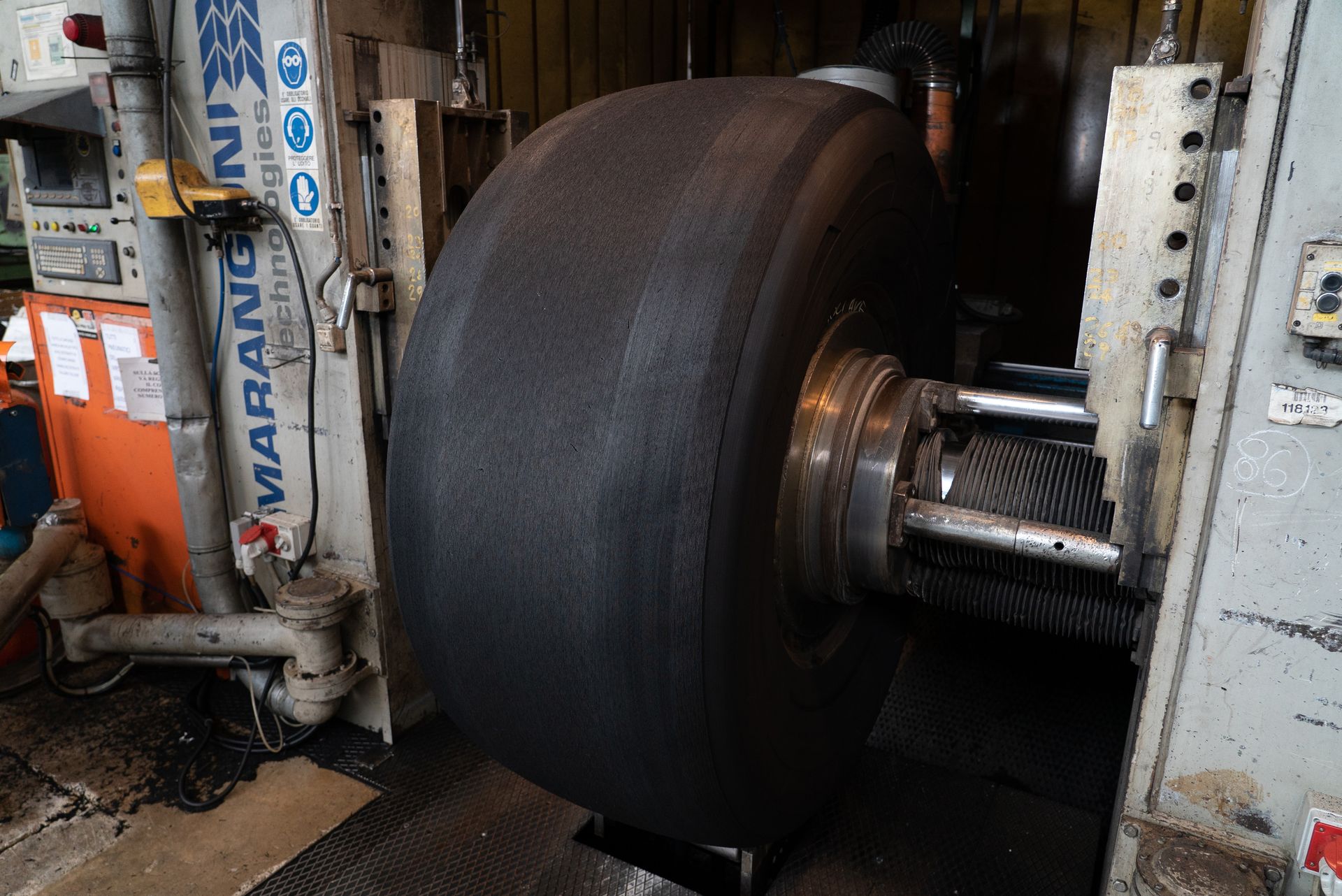 Durante la fase di ispezione/misurazione della carcassa, è emerso come tale prodotto non rientrasse nei parametri tipici di una carcassa di tipo L4. Pertanto, non si poteva processare la carcassa in uno stampo convenzionale per la ricostruzione a caldo: era necessario un metodo alternativo. Marangoni ha optato per vulcanizzare il pneumatico confezionato in autoclave. Le due tipologie di macchinari per la vulcanizzazione – in stampo e in autoclave – che Marangoni ha a disposizione nel suo stabilimento di Rovereto, fanno sì che l’azienda possa ricostruire praticamente qualunque pneumatico Otr.