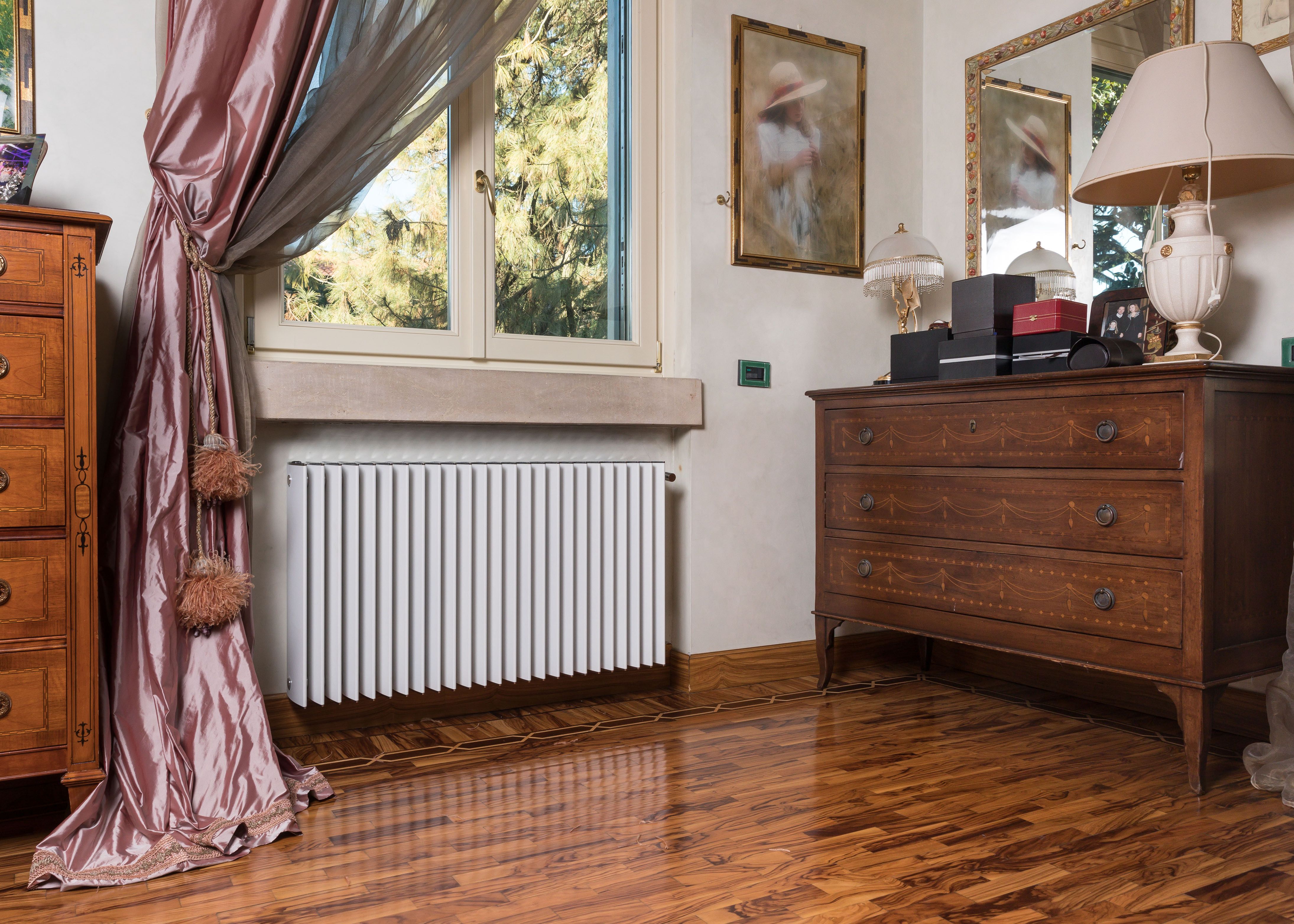 Il primo si contraddistingue per la sua versatilità, modularità ed eleganza che lo rendono installabile in ogni ambiente garantendo estrema coerenza progettuale. Othello Plate è ideale per soluzioni sotto finestra oppure a tutta parete grazie alla ridotta profondità degli elementi. Il secondo è contraddistinto da un’anima innovativa, dalla flessibilità e da una potenza termica senza pari sul mercato. Il design di questo radiatore monocolonna si sviluppa sull’asse verticale con un perfetto equilibrio tra raffinate cromature e sofisticate verniciature. Nell’ampio corridoio al primo piano, che collega le varie stanze, è presente la versione alta di Othello Plate che crea un dialogo armonico e discreto con i modelli presenti nel living e nella camera da letto.