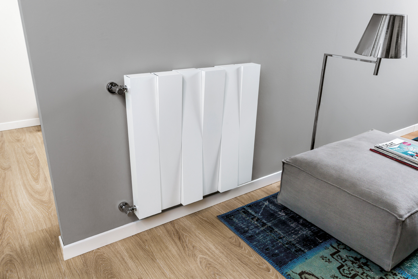 Piano Move di Ridea vuole essere una rivoluzione nel settore del termoarredo. Cuore del progetto, nato dalla matita di Meneghello Paolelli Associati, è la particolare disposizione degli elementi radianti sull’asse centrale che crea un movimento inedito e insolito rispetto ai radiatori tradizionali in cui i collettori sono posti ad angolo retto. Giocando sul disallineamento sui tre assi, si sovverte la staticità e si crea un mix tra ordine e caos che dona alle linee del radiatore un raffinato dinamismo.