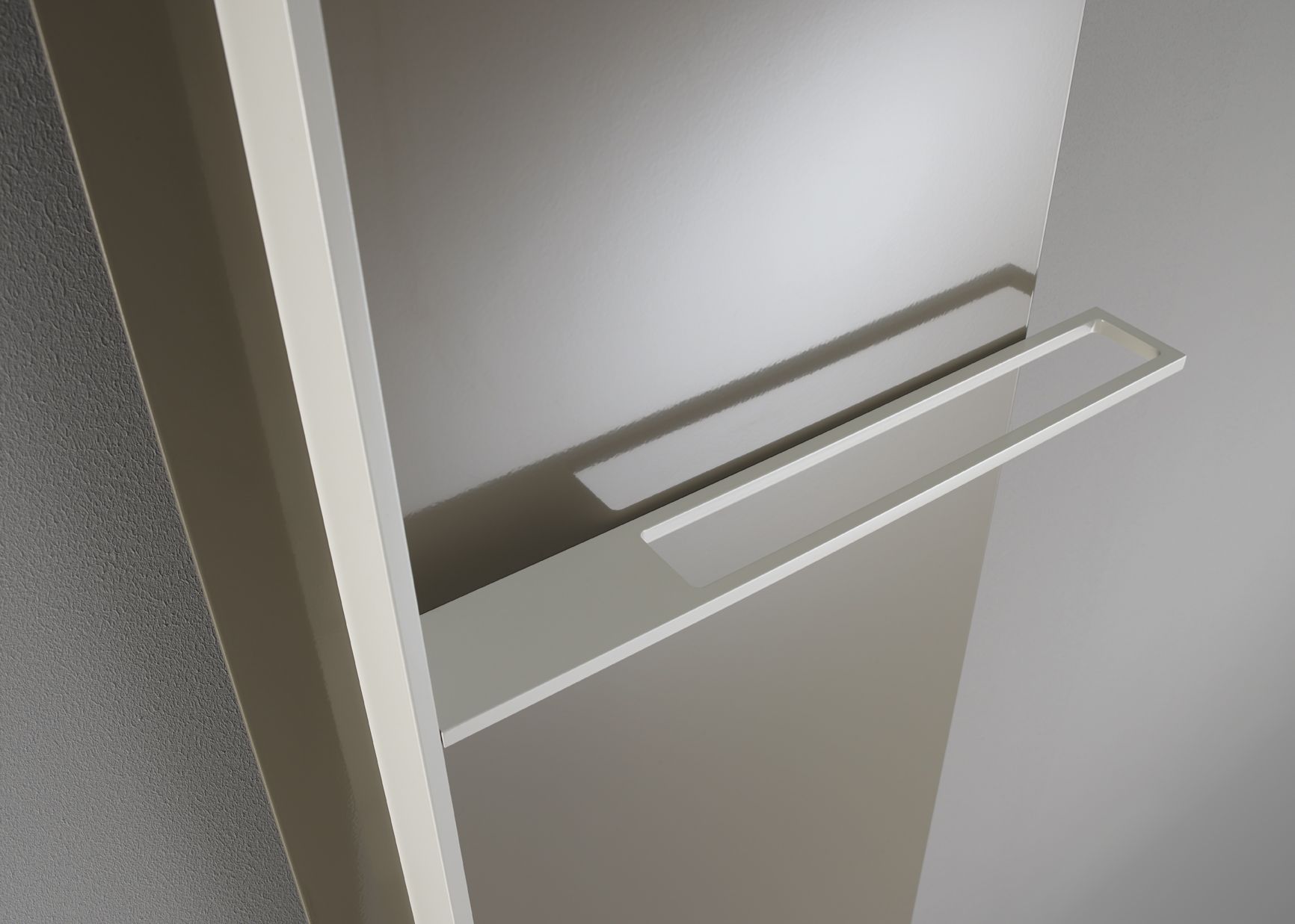 Personalizzabile e versatile come tutte le proposte Ridea, Essenza si declina in quattro diverse versioni grazie a due accessori appositamente pensati per la collezione che forniscono varie soluzioni formali sul piano estetico. Possono essere, infatti, aggiunti un elemento orizzontale o uno verticale, da utilizzare rispettivamente come comodo portasalviette e portaccapatoio, che disegnano la superficie con un segno grafico deciso, per dar vita a spazi di grande personalità. Un gioco di forme ma anche di finiture, poiché questi elementi possono abbinarsi alla nuance della piastra per un gradevole effetto monocromatico oppure creare un originale gioco di contrasti.