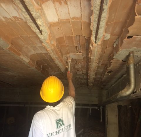 La tecnologia di rinforzo strutturale dei solai in latero-cemento Ruredil X Beam System con tralicci piani elettrosaldati e malta da restauro strutturale Exocem FP70 presuppone un totale sfondellamento preventivo.