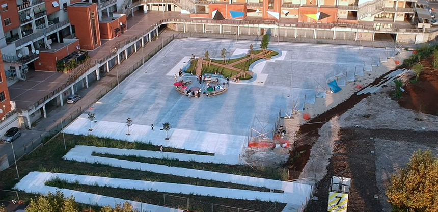 Questo percorso accompagna l’intera realizzazione del nuovo spazio pubblico, dall’ideazione fino al suo completamento: architettura, urbanistica, ricerca psicosociale, comunicazione e arte pubblica lavorano in sinergia per superare i tradizionali confini disciplinari e normativi dell’opera pubblica e sperimentare nuove modalità di costruzione degli spazi collettivi.