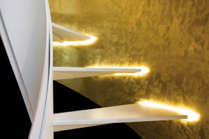 Ampie e variegate sono le finiture dedicate alle scale, con l’introduzione e lo studio di accessori e soluzioni sempre nuovi che coinvolgono anche la luce.