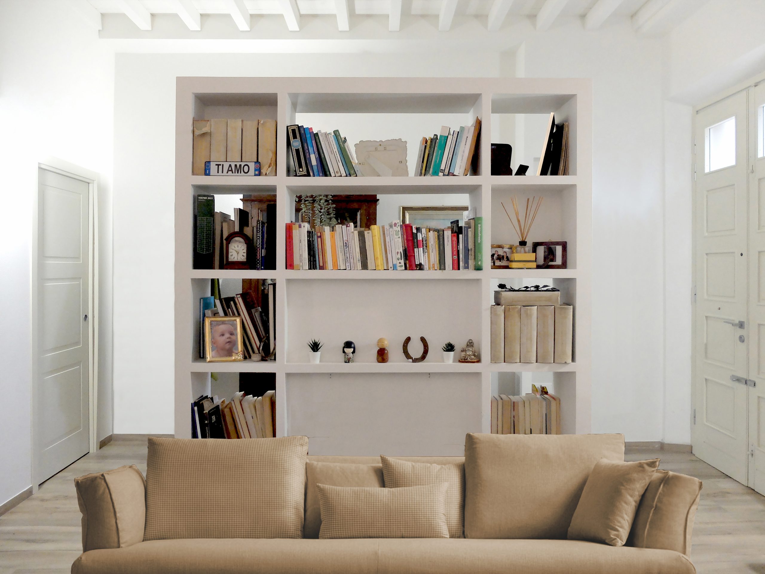 Questa audace decisione ha consentito la riconfigurazione del layout interno ricavando uno spazio dispensa al piano terra e un terzo bagno al piano primo oltre alla ricollocazione strategica della scala, protagonista dal ruolo chiave nella trasformazione dell’abitazione.