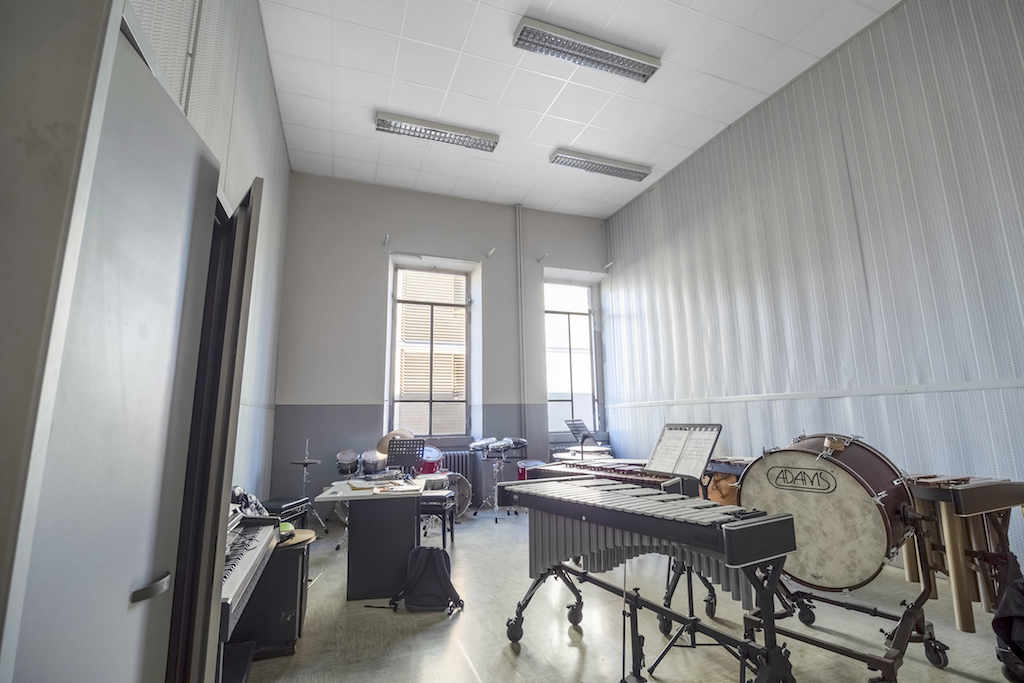 «Quando si è arrivati a dover sostituire il controsoffitto preesistente ci si è accorti della presenza di un solaio misto legno e calcestruzzo realizzato ad inizio secolo, che ad oggi era soggetto a fenomeni di sfondellamento. Le strutture che componevano il solaio erano molto esili (travetti in legno e calcestruzzo gettato su rete armata) e non sarebbero state in grado di sostenere gli elevati carichi aggiuntivi richiesti per le classiche soluzioni in lastre. Si è così pensato di adottare una soluzione che permettesse di ottenere un elevato comfort acustico e nello stesso tempo una veloce ispezionabilità per poter verificare lo stato di fatto delle strutture esistenti» Fermo Mombrini, Sales Manager Lombardia Rockfon, Rockwool Italia Spa