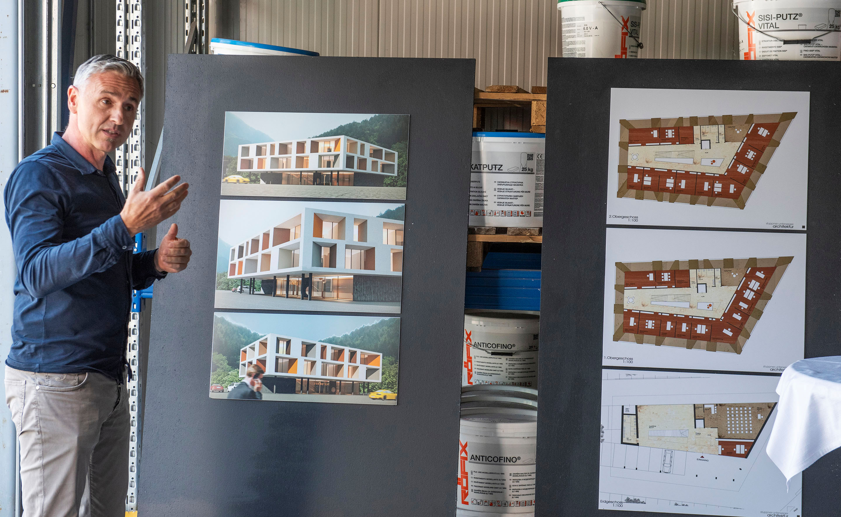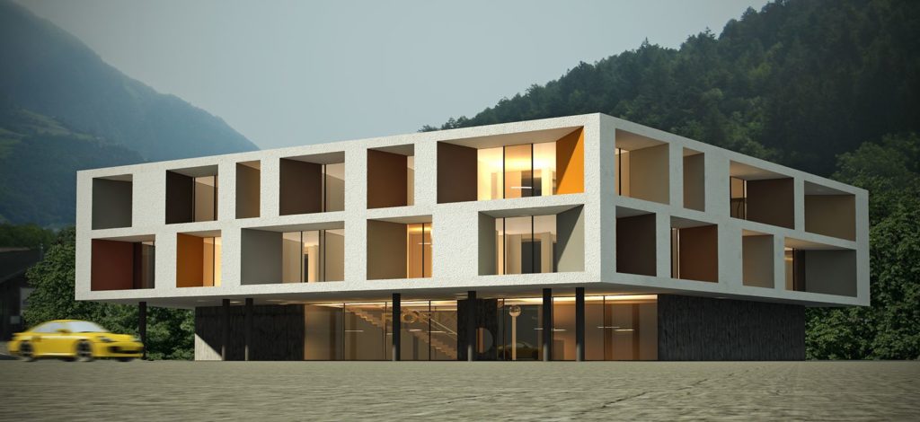 Il progetto è stato disegnato dall’architetto Harald Stuppner dello studio architettura Stuppner-Unterweger di Merano e si fonda sulla costruzione di un edificio con un volume di 3900 m3 e una superficie di 950 m2 dedicata agli uffici suddivisa tra primo e secondo piano. Il piano terra sarà un misto di vetro e muratura con rivestimento ad effetto, mentre i due piani superiori saranno avvolti da una muratura interrotta da vani per gli elementi di finestre. Il colore dominante all’esterno sarà il crema, ma le superfici decorative saranno lisce, rigate o modellate consentendo ampie possibilità di configurazione estetica. In più, i vani saranno evidenziati da sfumature più calde. Insomma, il nuovo edificio costituirà una sorta di catalogo in dimensione reale dei nostri rivestimenti e delle nostre finiture.