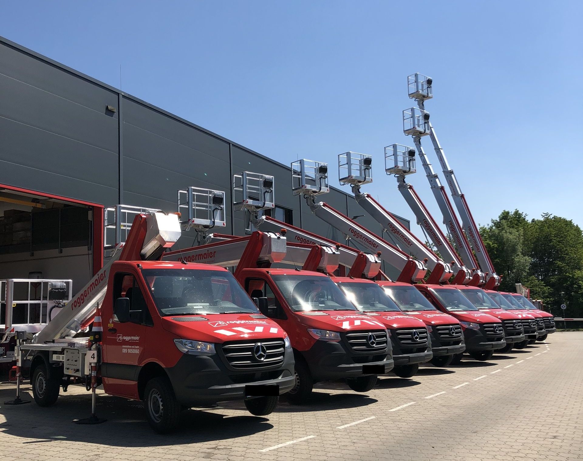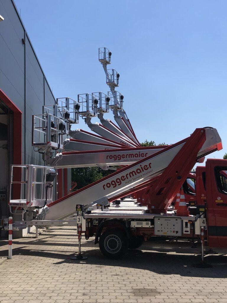 Roggermaier gmbh, fondata nel 1983, attiva in Germania con 10 depositi, gestisce una flotta di noleggio di 2000 unità che comprende tutti i tipi di piattaforme, sollevatori telescopici, mini gru cingolate e carrelli elevatori.