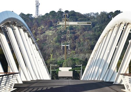 Il ponte è vuoto perché non esiste una vera ragione per attraversarlo e la proposta elaborata dall’ arch. Napolitano (dello studio Lad, laboratorio di architettura e design) consiste nella predisposizione di un progetto di una teleferica che dalle pendici di Monte Mario sale in direzione assiale rispetto al Ponte della Musica, fino ad arrivare quasi alla sommità del parco di Monte Mario stesso.