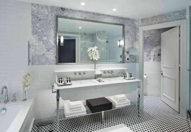 Tutte le suite dispongono di bagni sontuosi rivestiti con lastre di marmo, ingressi con pavimenti a mosaico e carta da parati personalizzata con mappe storiche di Londra degli anni ’20 e ‘30. Ogni camera si caratterizza per i dettagli di design in omaggio alla storia dell’edificio e alla sua posizione, come le poltrone arancioni, un tributo alle sedute di pelle rossa e arancione utilizzate nelle sale del consiglio di Londra, o le stampe di cappelli a bombetta delle tende, un rimando al business londinese, il tutto corredato da tessuti preziosi e oggetti d’arredo collegati alla storia della città.