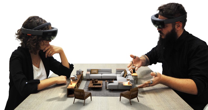 Indossando il computer olografico Microsoft Hololens l’utente (il progettista, il venditore e il cliente finale) può vedere l’ologramma del progetto in scala ridotta, appoggiato su un piano orizzontale, e camminare intorno a esso per apprezzarne ogni minimo dettaglio.