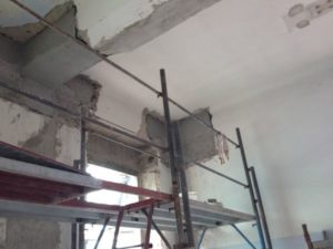 Gli edifici oggetto dell’intervento, realizzati intorno agli anni ‘30, presentavano in particolare uno schema strutturale a telaio in calcestruzzo armato con travi ribassate e solai laterocementizi.