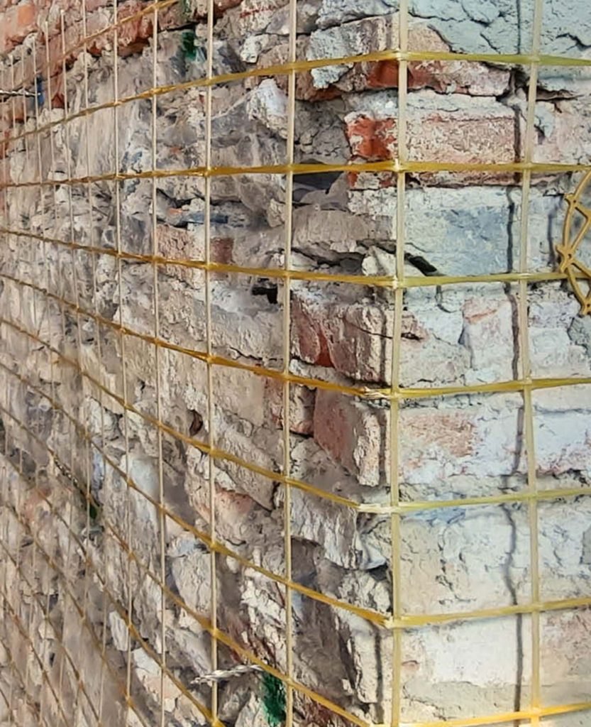 Grazie all’applicazione combinata delle reti G-Mesh con le malte da intonaco strutturale Ruregold, è possibile eseguire l’intervento di placcaggio delle murature mediante la tecnica dell’intonaco armato, che rappresenta una delle soluzioni indicate nella Circolare n.7 del 21/1/2019 finalizzate all’incremento della capacità portante e sismo-resistente delle pareti.