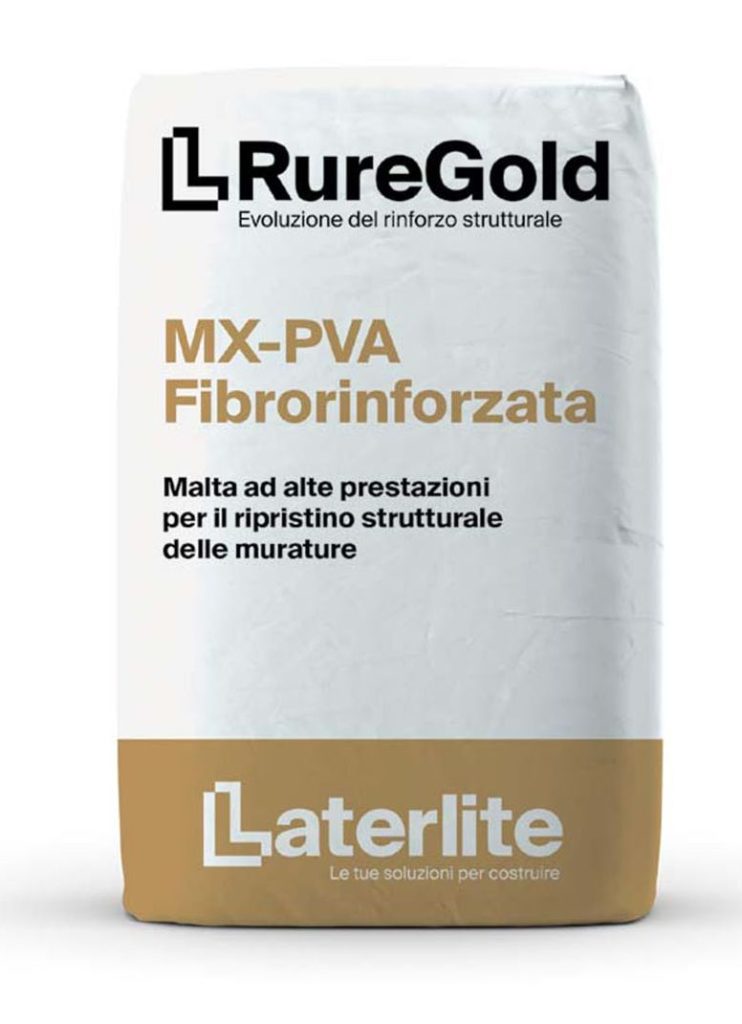 Laterlite arricchisce la gamma RureGold con Mx-Pva Fibrorinforzata, una malta premiscelata strutturale ad alte prestazioni progettata per il consolidamento e il recupero delle murature esistenti.
