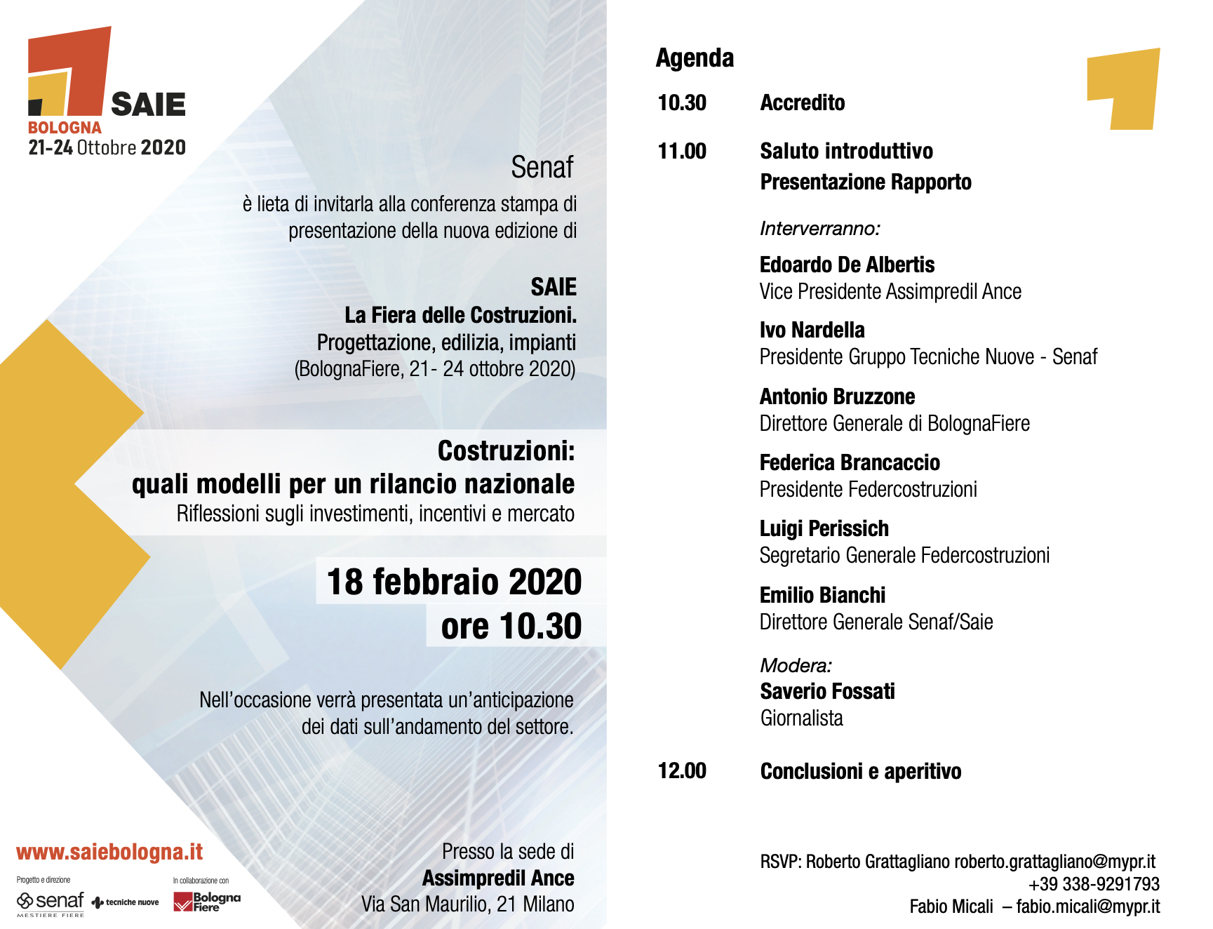 Sarà presentata ufficialmente il 18 febbraio alle 10:30 presso la sede milanese di Assimpredil Ance, l’edizione 2020 di “Saie, la Fiera delle Costruzioni. Progettazione, edilizia, impianti” che si terrà a BolognaFiere dal 21 al 24 ottobre.