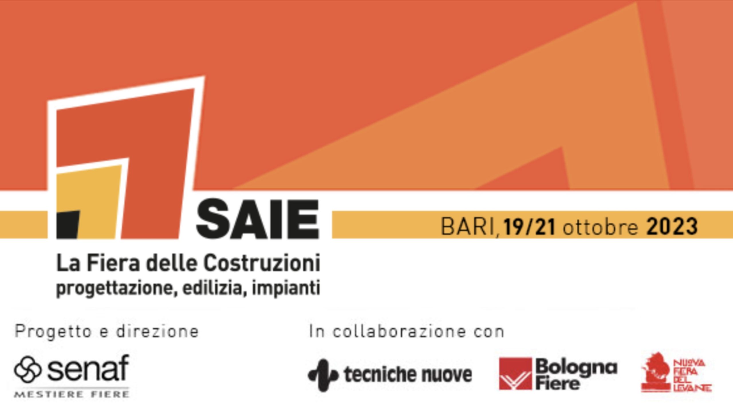 Saie 2023 – La Fiera delle Costruzioni – progettazione, edilizia, impianti – ufficializza la data della prossima edizione: 19/21 ottobre 2023, Bari – Nuova Fiera del Levante.