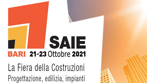 Saie, la fiera italiana dedicata in modo integrato all’edilizia ed impiantistica, si terrà a Bari dal 21 al 23 ottobre 2021, sarà una positiva e utile occasione di business e networking; energia per ripartire; sostegno all’eccellenza del fare delle nostre aziende; esperienza storica nell’agevolare il mercato a sviluppare concrete opportunità di business