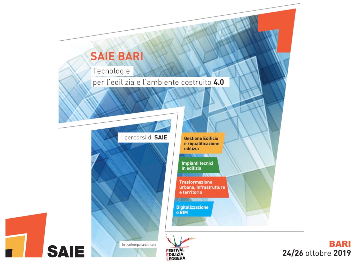 La novità di Saie Bari è stata accolta con favore anche da Alessandro Ambrosi, Presidente della Nuova Fiera del Levante«Siamo molto orgogliosi di ospitare l’edizione 2019 del SAIE che rappresenta istituzionalmente uno degli appuntamenti più importanti nell’ambito delle fiere di settore nazionali ed internazionali. Bari diventerà la capitale italiana dell’edilizia per tre giorni raccogliendo il testimone da Bologna e sottolineando il valore del nostro quartiere fieristico. Il Saie rappresenta per Nuova Fiera del Levante una importante occasione di networking e conoscenza di nuove realtà, e i temi su cui si fonda sono per noi assolutamente strategici e affini. Dall’innovazione alla sicurezza sismica, dalla sostenibilità alla trasformazione digitale. Sarà una nuova sfida emozionante».