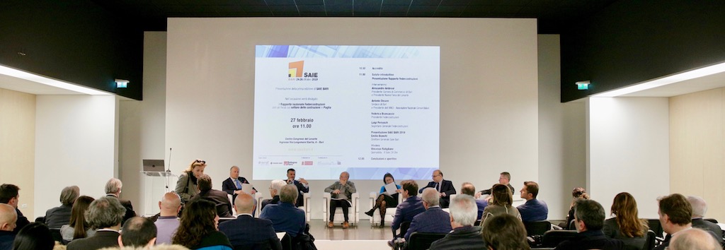 La storica fiera delle Costruzioni si sdoppia e punta sul capoluogo pugliese. Saie Bari si svolgerà dal 24 al 26 ottobre 2019 presso la Nuova Fiera del Levante. E proprio a Bari sono stati presentati la prima edizione della manifestazione biennale delle tecnologie per l’edilizia e l‘ambiente costruito 4.0 che punta sulla crescita delle imprese e il Rapporto Federcostruzioni.