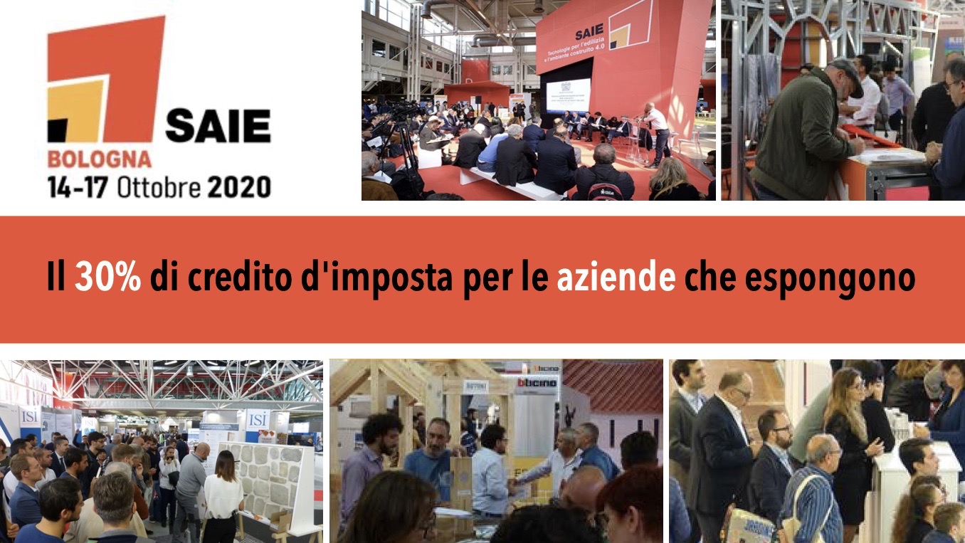 Le aziende che esporranno all’edizione 2020 di Saie, La Fiera delle Costruzioni. Progettazione, edilizia, impianti, in programma a BolognaFiere dal 14 al 17 ottobre 2020, avranno la possibilità di recuperare il 30% a titolo di credito d’imposta per le spese sostenute.