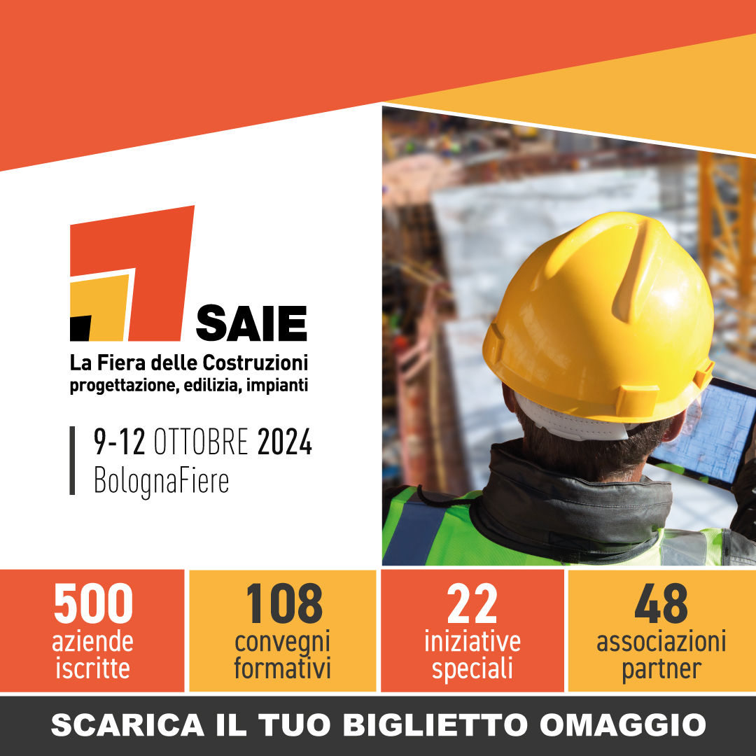 Saie Bologna 2024 (9 – 12 ottobre, BolognaFiere) è l’opportunità da non perdere dedicata a tutti i protagonisti della filiera: scarica qui il biglietto omaggio per partecipare e condividi il link con tutti i colleghi, collaboratori e partner tecnici.