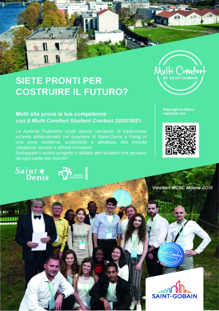 Sono aperte le iscrizioni al Multi Comfort Student Contest, concorso rivolto agli studenti di Architettura e Ingegneria Edile delle università italiane organizzato da Saint-Gobain, basato sui principi del programma Multi Comfort: efficienza energetica, sostenibilità, comfort e benessere.