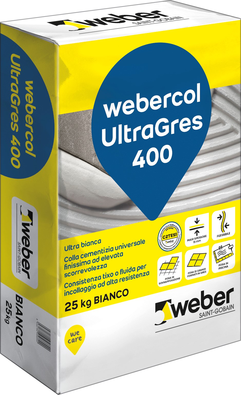 Finissima e molto lavorabile, Webercol UltraGres 400, appena lanciata da Saint-Gobain Weber, è una colla cementizia per piastrelle ad elevata deformabilità (classificata S1) che consente elevata libertà nella regolazione della consistenza: è possibile, infatti, aggiungere acqua al prodotto per renderlo molto fluido e scorrevole senza compromettere i suoi valori di adesione, anche in applicazioni critiche.
