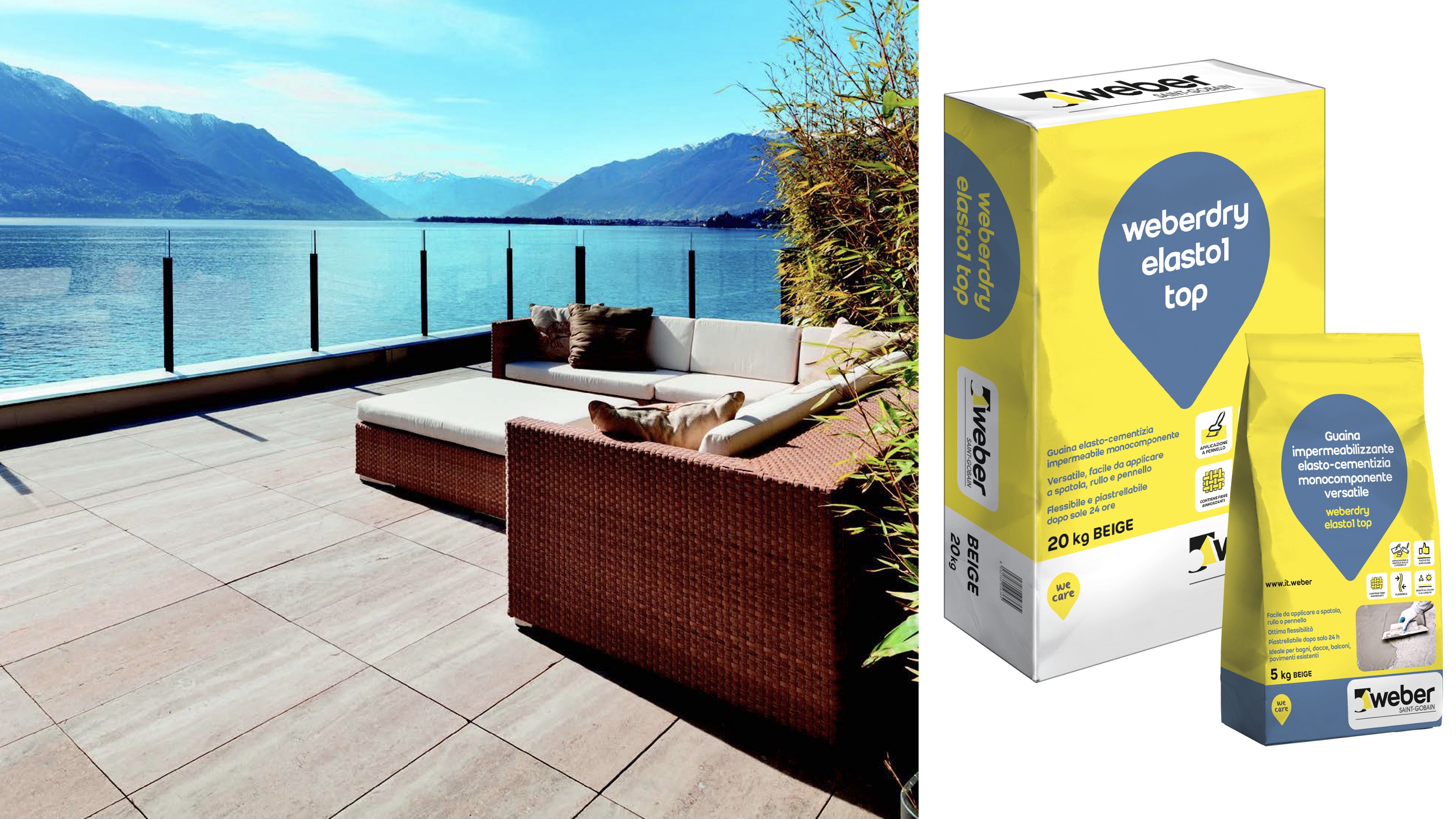 weberdry elasto1 top, di Saint Gobain Weber, è un prodotto utilizzabile sia come impermeabilizzante sotto piastrella sia per la protezione esterna.