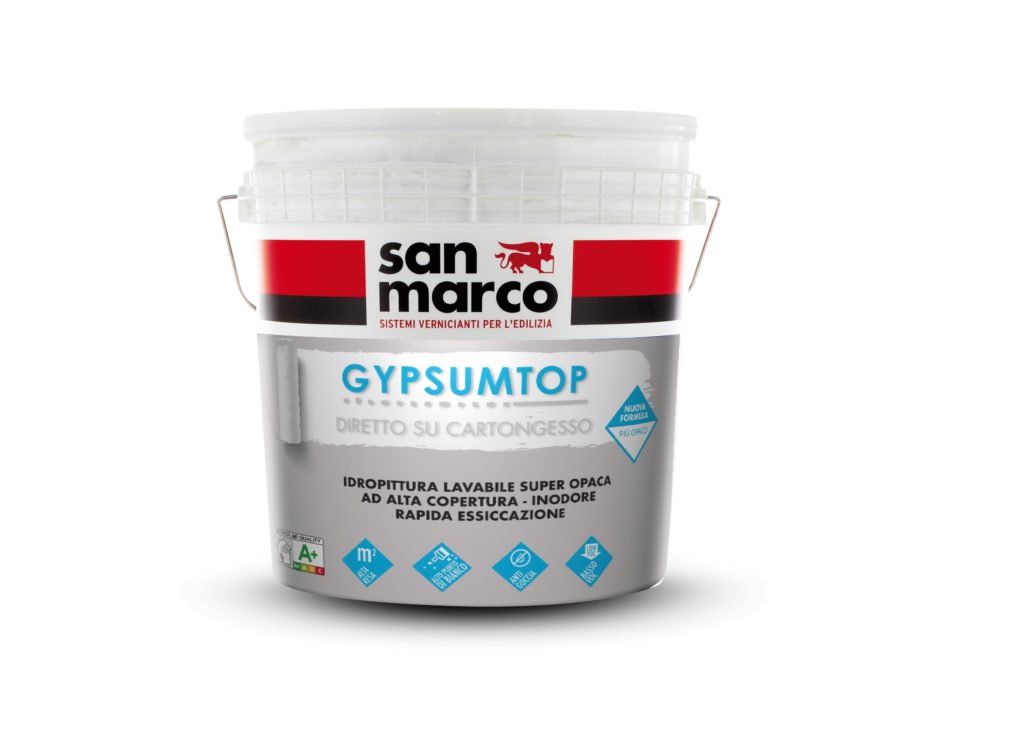 San Marco, marchio che opera nella produzione e commercializzazione di pitture e vernici, ha messo a punto l’idropittura lavabile Gypsumtop: un’idropittura bianco opaco, pensata per l’applicazione sul gesso o sul cartongesso. Quest’ultimo è uno dei materiali più utilizzati per organizzare gli spazi interni dell’ambiente abitativo e per creare controsoffitti, è infatti versatile e semplice da impiegare. Gypsumtop è perfetta per rivestire le superfici in cartongesso ed è inoltre facile da applicare e di rapida essicazione. È adatta per rifinire gli ambienti in maniera semplice e veloce.