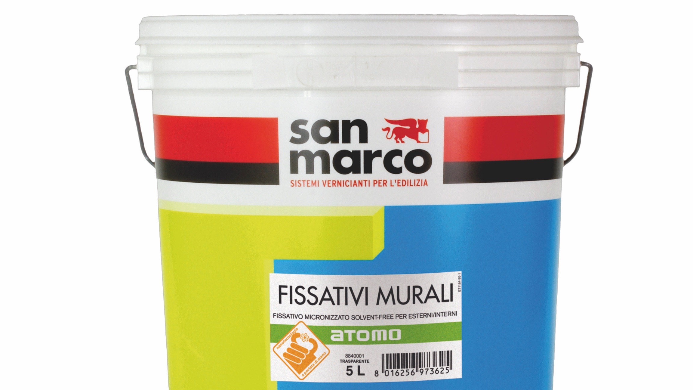 Per il consolidamento del supporto all’esterno è stato impiegato il fissativo murale micronizzato inodore Atomo. Il prodotto San Marco, è stato diluito con acqua e applicato su tutte le superfici murali.Il fissativo rappresenta una soluzione moderna e alternativa ai “classici” isolanti al solvente poiché sia l’applicazione che l’essicazione si svolgono in presenza di bassissime emissioni di Voc.