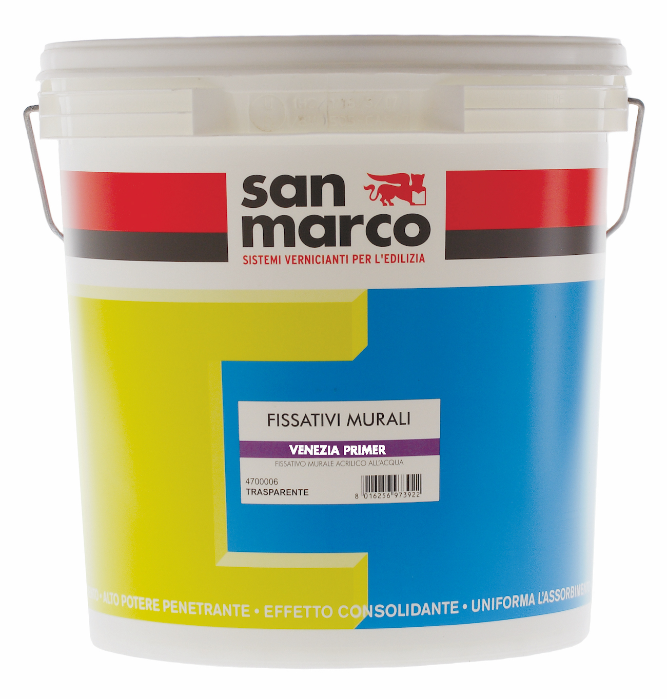 Dopo aver utilizzato il fissativo Atomo, per le superfici interne è stato impiegato il primer murale idrodiluibile Venezia Primer, indicato per l’impregnazione e il consolidamento di diversi supporti, tra cui il cartongesso. Il prodotto a grana fine e colorabile a tintometro è l’ideale anche in caso di superfici disomogenee.