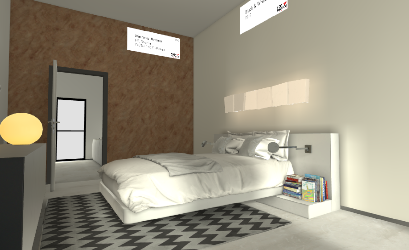 Basta indossare la maschera a disposizione nell’area espositiva per ritrovarsi all’interno di un appartamento 3D e vivere il colore o l’effetto preferito: durante il viaggio virtuale il cliente ha a disposizione sei soluzioni di arredo studiate da professionisti del settore, che ricreano ambienti quanto più vicini ai gusti dell’utilizzatore. In ogni scenario – minimal, urbano, moderno, classico, contemporaneo o naturale – ci si può muovere tra soggiorno in open space con angolo cucina, camera da letto e bagno, per un totale di 18 stanze ultra realistiche in una definizione video ben superiore all’HD, con oltre 1.000 oggetti presenti all’interno. A seconda dello stile della propria abitazione, il cliente può sperimentare concretamente le soluzioni che più lo rappresentano tra oltre 250 tinte o decorativi visualizzabili.