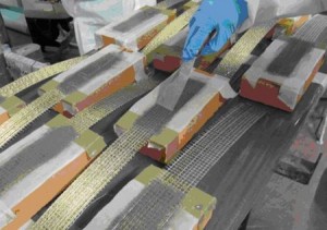 La preparazione dei campioni rinforzati con tessuti in fibra di carbonio e acciaio.