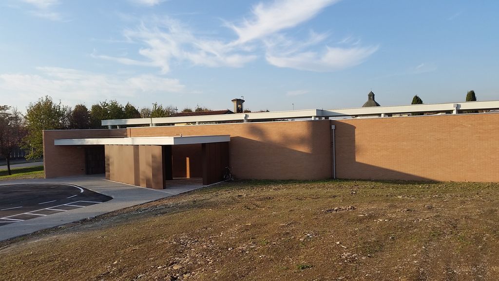L’uso del mattone rosato e del botticino bianco caratterizzano nei materiali e nei colori il progetto di ampliamente del piccolo cimitero in provincia di Brescia. Materiali tradizionali di lunga durata che sottolineano il legame del costruito con il territorio circostante.