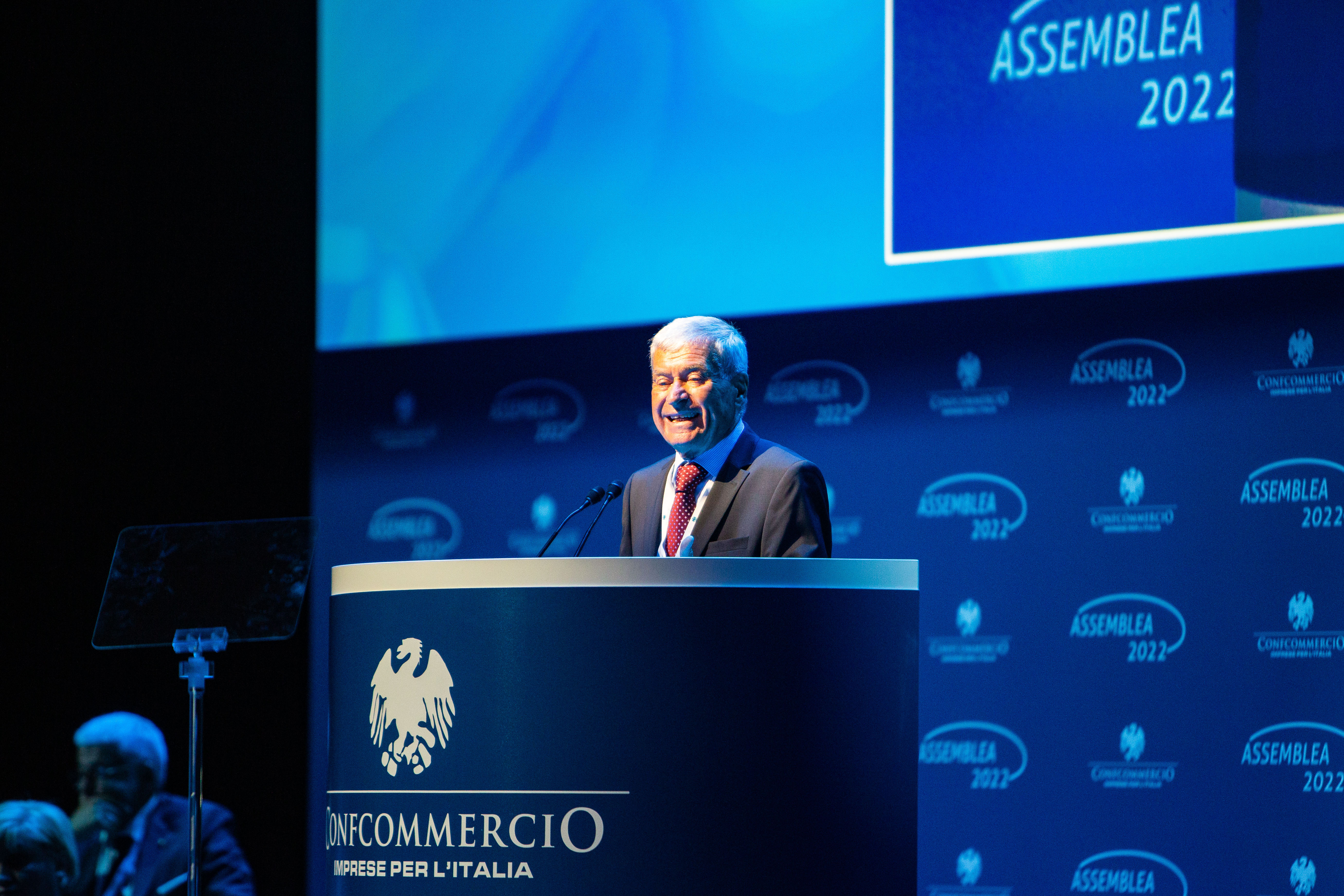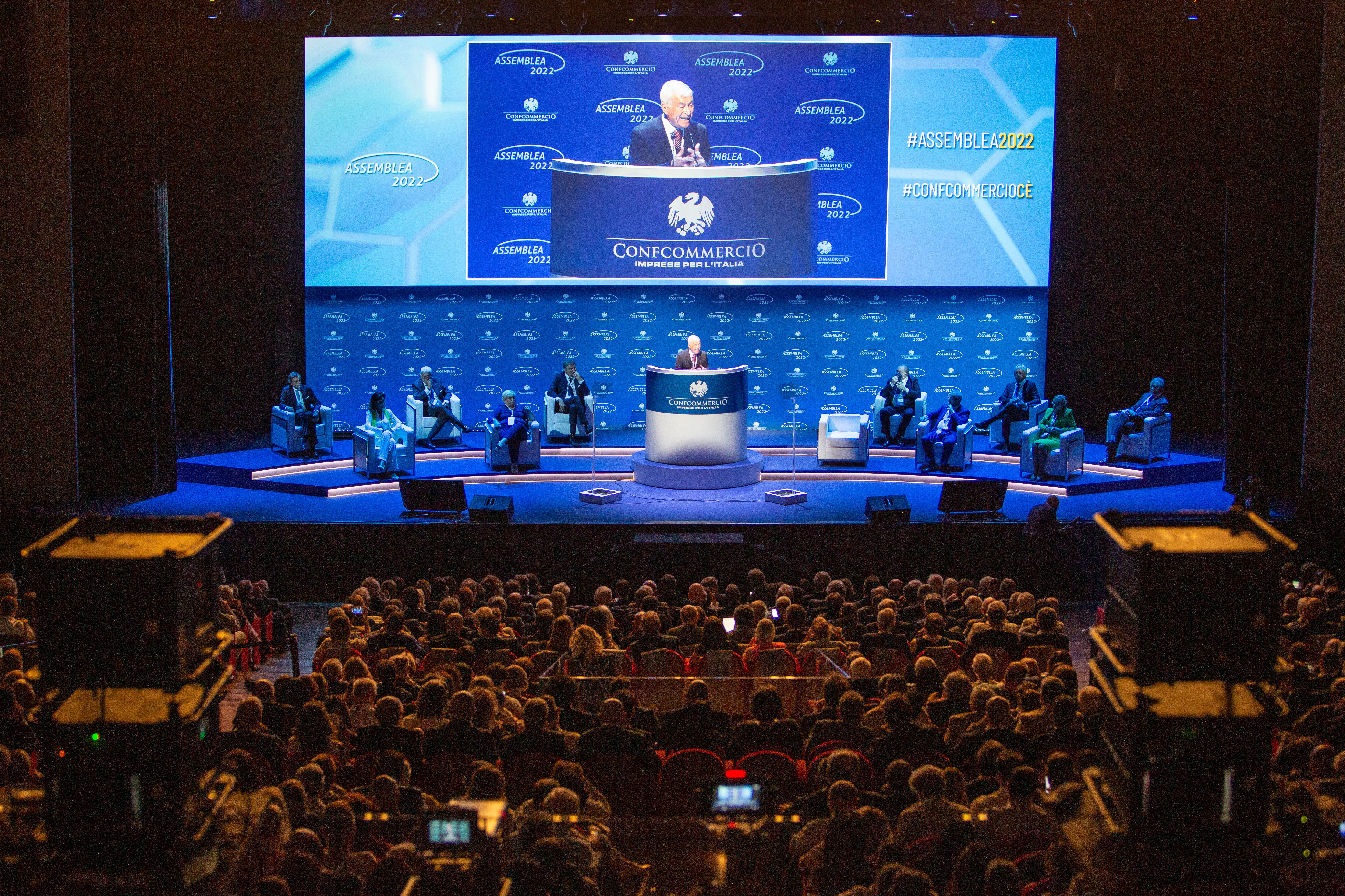 Dopo l’Inno nazionale e il saluto, via messaggio, del Presidente della Repubblica, Sergio Mattarella, ad aprire la 36esima Assemblea generale Confcommercio che si è tenuta a Roma l’8 giugno 2022 e alla quale ha partecipato anche Giancarlo Giorgetti, Ministro dello Sviluppo economico è stato il padrone di casa, Carlo Sangalli, Presidente di Confcommercio.