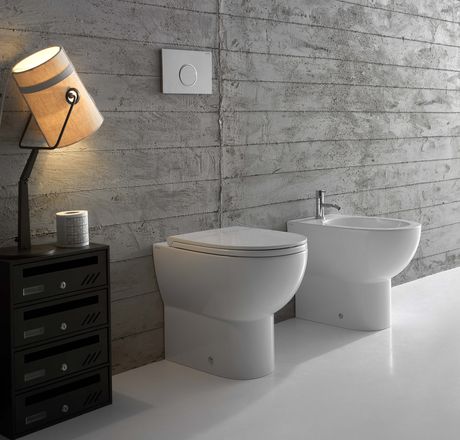 Ampi bacini e bordi sottili, i sanitari sospesi non lasciano vedere alcun foro di fissaggio, quelli a terra invece sono del tipo ad installazione a filo parete con possibilità di utilizzo del sistema scarico multi.