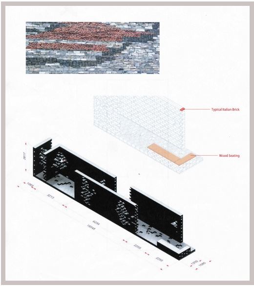 Wang Shu – con la collaborazione nell’allestimento dello Studio Calzoni di Milano – ha progettato una installazione in mattoni faccia a vista SanMarco (linea Terrae, colore Rosso), una serie di quinte murarie caratterizzate da texture nelle quali riprende il suo modo originale di mescolare senza soluzione di continuità il contemporaneo con il culturale, l’innovazione con la tradizione, materiali nuovi con altri recuperati; il tutto con una qualità espressiva basata sulle proporzioni e sulle tecniche costruttive tradizionali. Wamg Shu attualmente il preside della Scuola di architettura della China Academy of Art, unico cinese a vincere nel 2012, il Premio Pritzker, il più importante riconoscimento al mondo di architettura afferma:«Solo le persone che capiscono la natura dei materiali possono fare dell’arte usando i materiali».