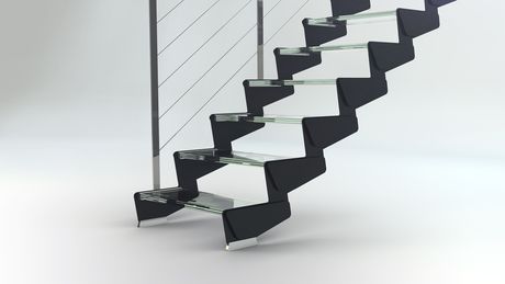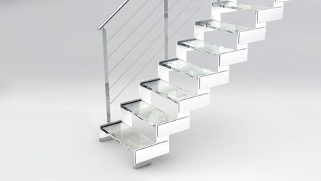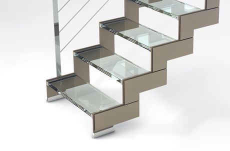 Le scale Monochrome, proposte in tre diverse forme – Direct, Stylish e Just – sono disponibili con cosciali e moduli in acciaio verniciato bianco, nero o tortora, cui si abbinano pedate in legno o cristallo.