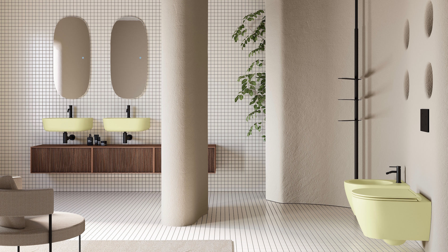 Le varietà di legni, lisci o cannettati, offre spunti inediti e di prestigio; le finiture colorate permettono di creare composizioni personalizzate ton sur ton e in linea con lo stile e il design scelto per il bagno.