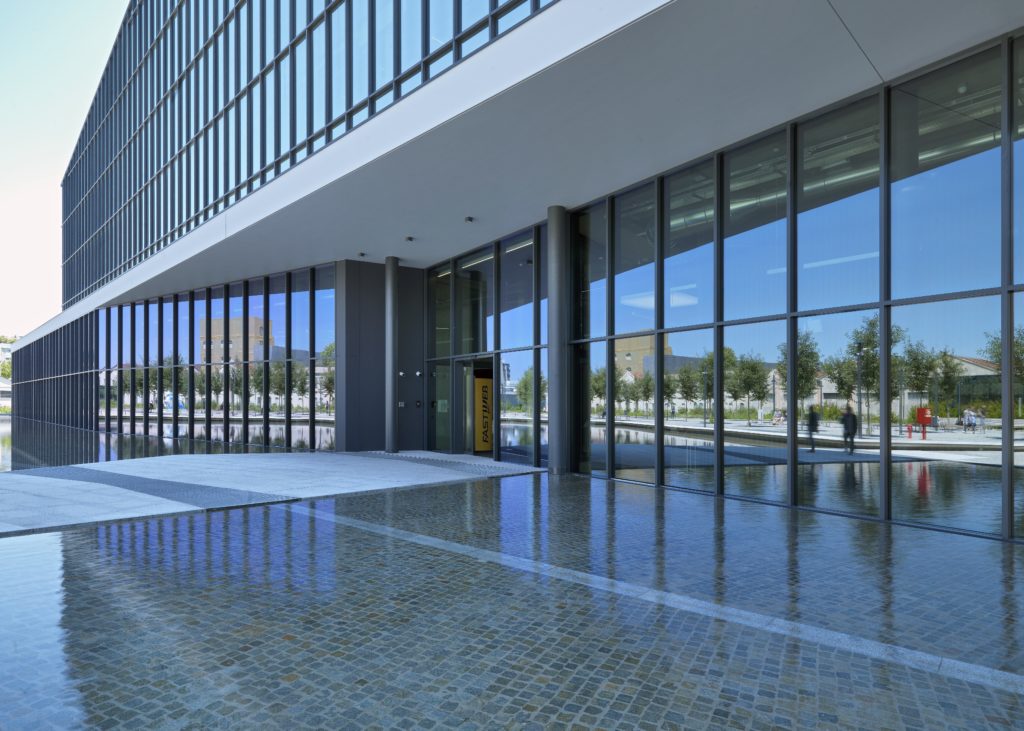 Le vetrate a tutt’altezza donano agli interni spazi luminosi e dinamici, che offrono quell’equilibrio ideale tra produttività e qualità della vita. Invece l’involucro architettonico esterno garantisce un più intenso rapporto fra spazio di lavoro e città, con le pareti trasparenti dell’edificio che riflettono l’ambiente circostante creando un felice connubio fra costruzione e spazi comunitari, all’insegna del concetto di “vivibilità sostenibile” che ha guidato l’intera operazione.