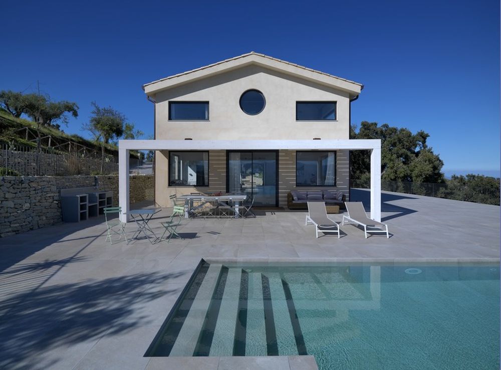 «Villa Dionisio è una residenza costruita ex novo realizzata a coronamento degli interventi di recupero e restauro dei fabbricati abitativi e agricoli situati sui terreni circostanti, di proprietà della mia famiglia da generazioni. Posta in posizione dominante circondata da un’ampia terrazza e valorizzata da una piscina dotata di doppio sfioro infinity, Villa Dionisio è pensata per ospitare fino a sei persone nel corpo principale e altre quattro nella dependance, offrendo loro tutti i servizi e i comfort indispensabili per vivere al meglio la villeggiatura. La valorizzazione del paesaggio e delle presenze naturali, come l’uliveto, è stata al centro dell’idea progettuale, sviluppata secondo due direttrici solo apparentemente contrastanti. Volevamo che la forma dell’edificio richiamasse i canoni estetici dell’architettura tradizionale, con tetto a doppia falda e coppi siciliani. Al contempo, gli spazi interni dovevano restituire un’immagine contemporanea, secondo stilemi minimalisti capaci di accompagnare con discrezione ogni momento della giornata. Tutti gli ambienti, anche al piano superiore, offrono scorci e vedute sul vastissimo panorama, rendendo naturale vivere Villa Dionisio senza soluzione di continuità fra interno ed esterno. Per questa ragione abbiamo prestato particolare attenzione ai sistemi trasparenti dell’involucro edilizio».