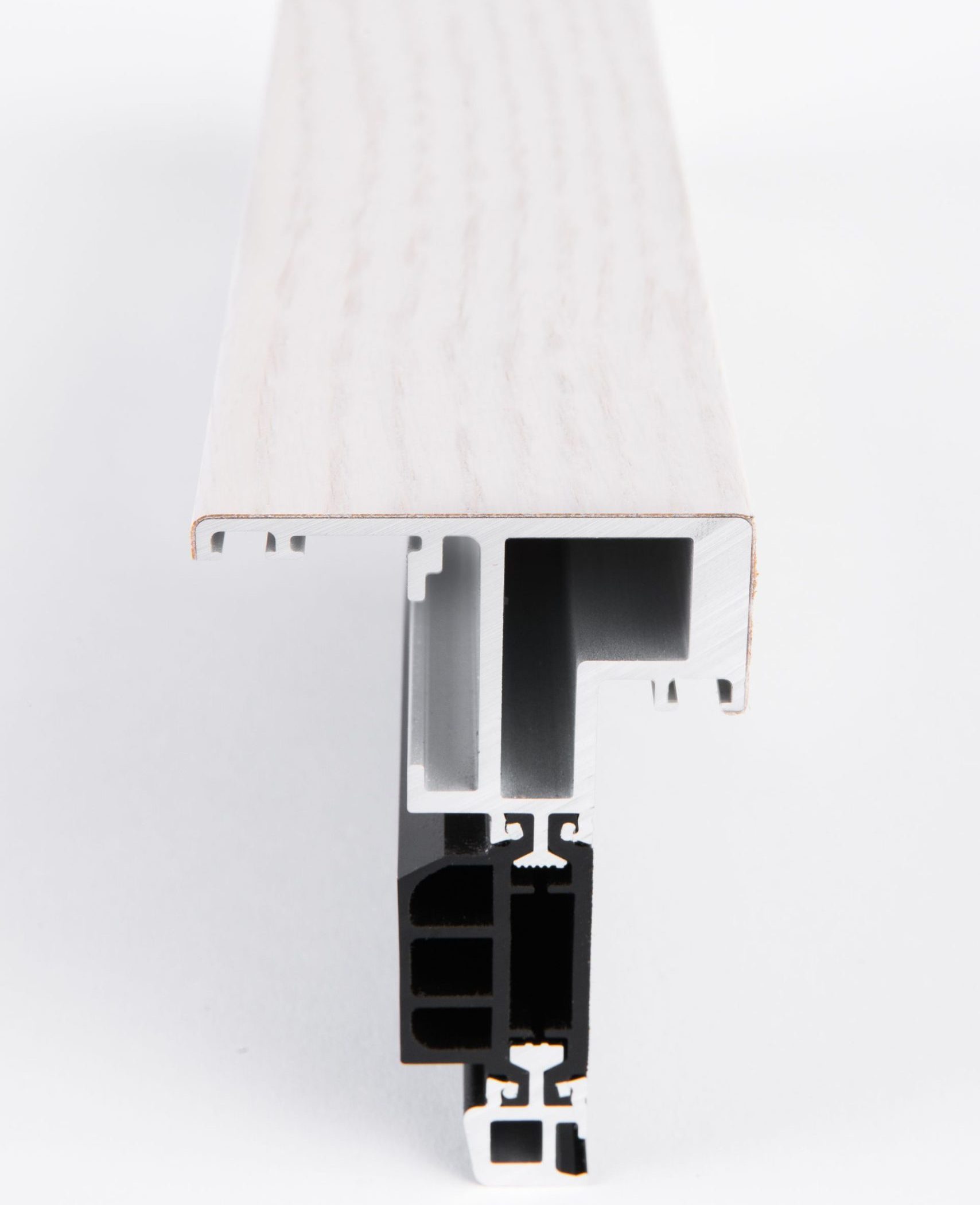 Il particolare processo produttivo prevede prima l’ossidazione dei profili in alluminio, poi l’applicazione del tranciato in legno grezzo, la levigatura e infine più mani di trattamento e finitura superficiale. Lo spessore delle lamine di soli 6 decimi di millimetro, inoltre, consente di realizzare un elevato numero di infissi con pochissima materia prima: il prodotto che si ottiene risulta piacevole al tatto, alla vista e con un’elevata sostenibilità ambientale.