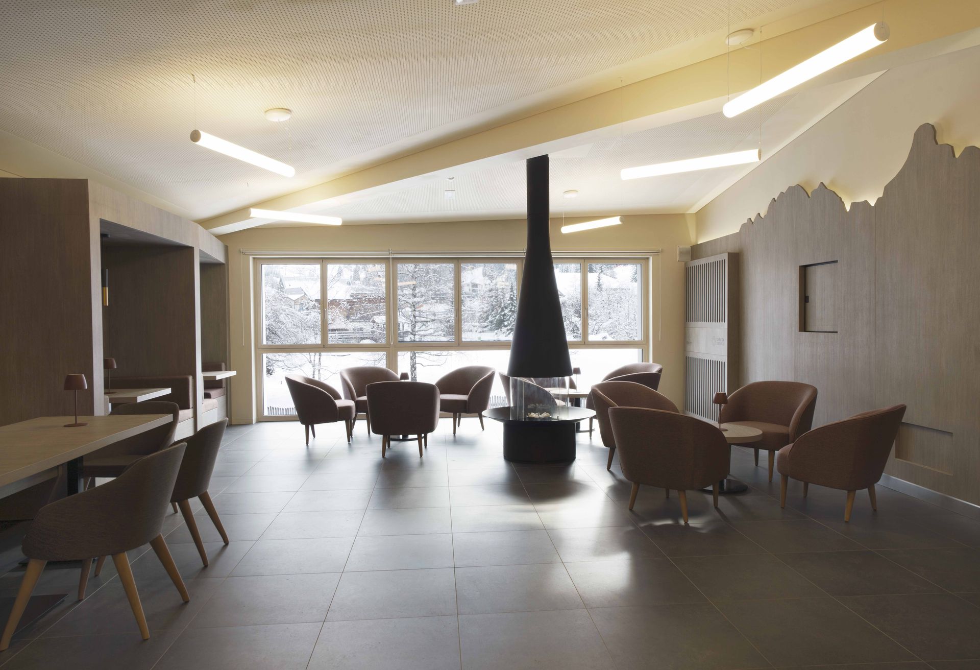 Una scelta che in questo caso ha garantito omogeneità stilistica, in linea con l’impronta generale del complesso, donando il giusto equilibrio e ricreando un’atmosfera accogliente anche in un contesto non residenziale. L’affidabilità e la robustezza dell’alluminio incontrano così il calore del legno e tutte le piacevoli sensazioni che in montagna questo materiale riesce a trasmettere.