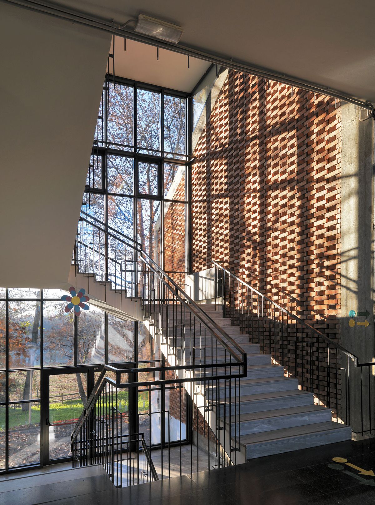 Per la scuola elementare Parini, i serramenti Schüco Aws 75 Wf.SI sono stati equipaggiati con vetrocamere a doppio e triplo vetro a seconda delle esigenze e sono stati realizzati con due diverse colorazioni opache, nero e bianco, come per i serramenti originali.