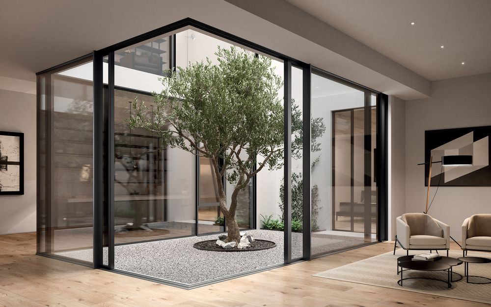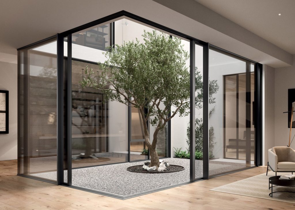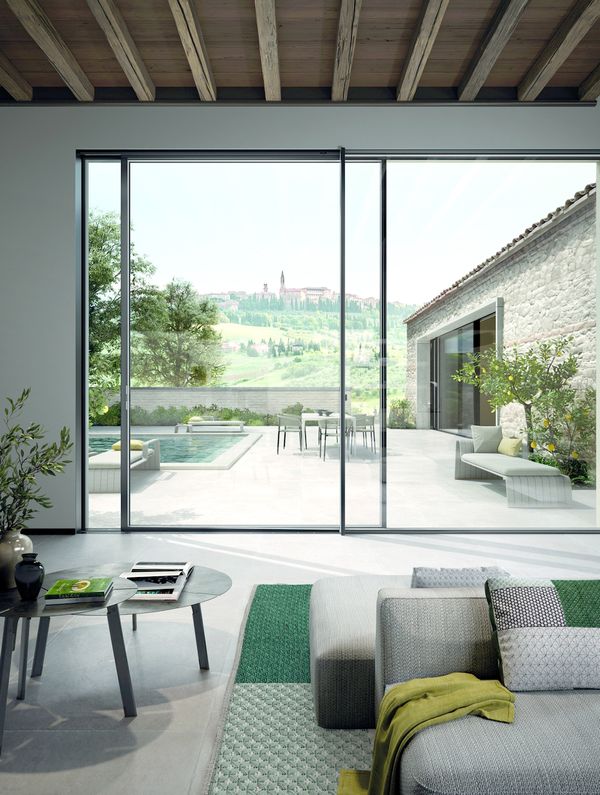 Lo scorrevole è caratterizzato da un’elevata modularità costruttiva e si distingue per i profili molto snelli, gli ingombri minimi (con incassi da 90 mm, per maggiori prestazioni di tenuta all’acqua, o da 57 mm, ideali per le ristrutturazioni) e l’esclusiva soglia 0-level, perfettamente in linea con il livello del pavimento. Questa particolarità tecnica e costruttiva non solo facilita il passaggio tra ambienti interni ed esterni, favorendo l’accesso alle persone con difficoltà di movimento come bambini, anziani e persone diversamente abili, ma permette anche di creare spazi continui in cui gli ambienti confluiscono gli uni negli altri senza alcuna interruzione.